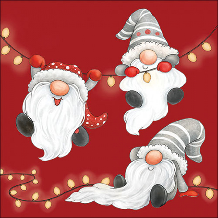 > 20pk GNOMES ON THE LANTERN CHAIN RED NAPKINS
